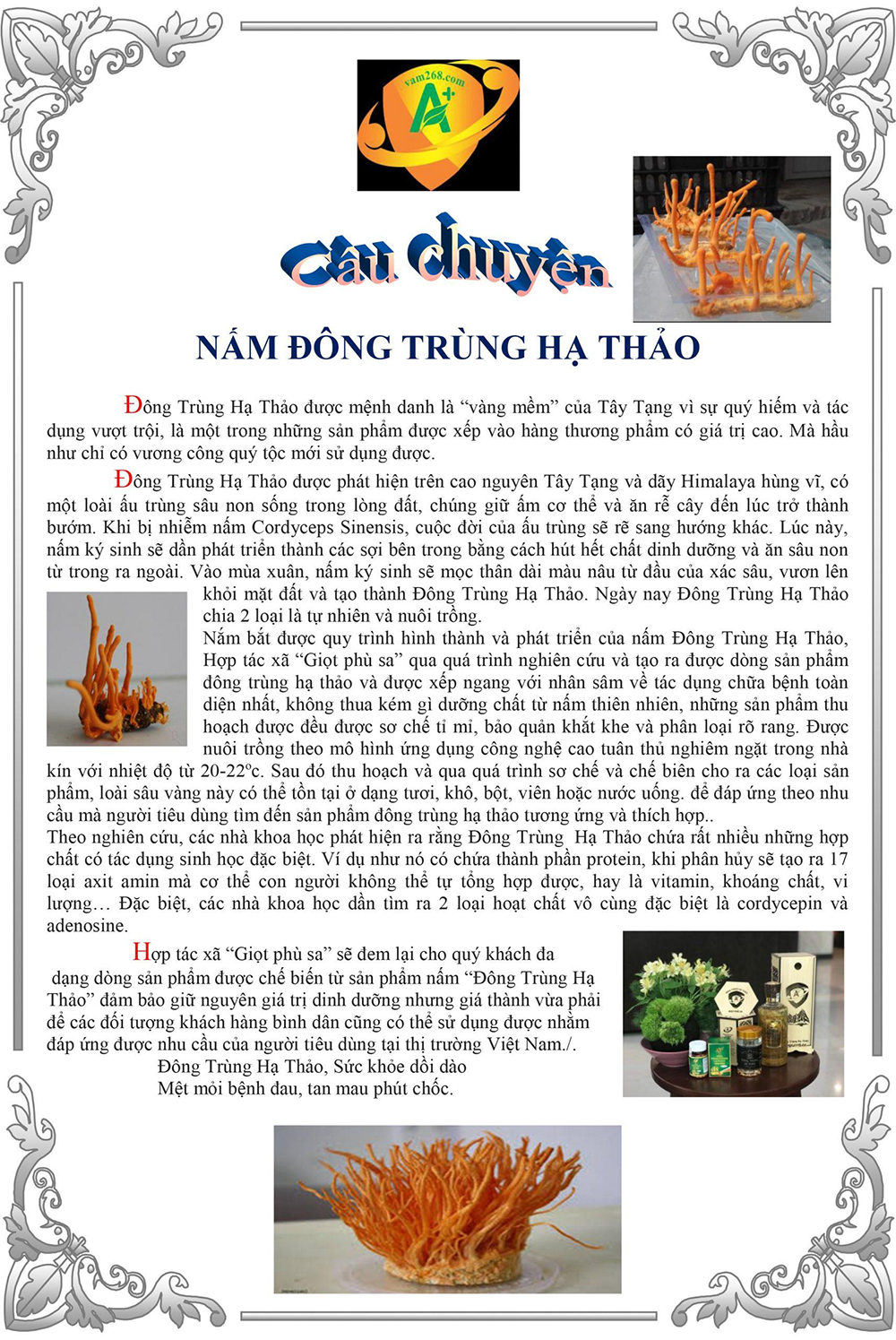 – Hỗ trợ trị rối loạn và suy giảm chức năng tình dục: Đông trùng hạ thảo được sử dụng trong nhiều thế kỷ để hỗ trợ điều trị rối loạn và suy giảm chức năng tình dục cho cả nam và nữ, các trường hợp giảm ham muốn, bất lực, vô sinh– Hỗ trợ làm giảm lượng cholesterol trong máu: Mặc dù tăng cholesterol trong máu thường không được coi là một bệnh, nhưng nó là dấu hiệu rõ ràng cho thấy cơ thể đã bị rối loạn chức năng trao đổi chất và nguy cơ về tim mạch. Đông trùng hạ thảo đã được kiểm chứng là có tác dụng tốt trong việc làm giảm lượng cholesterol trong máu.